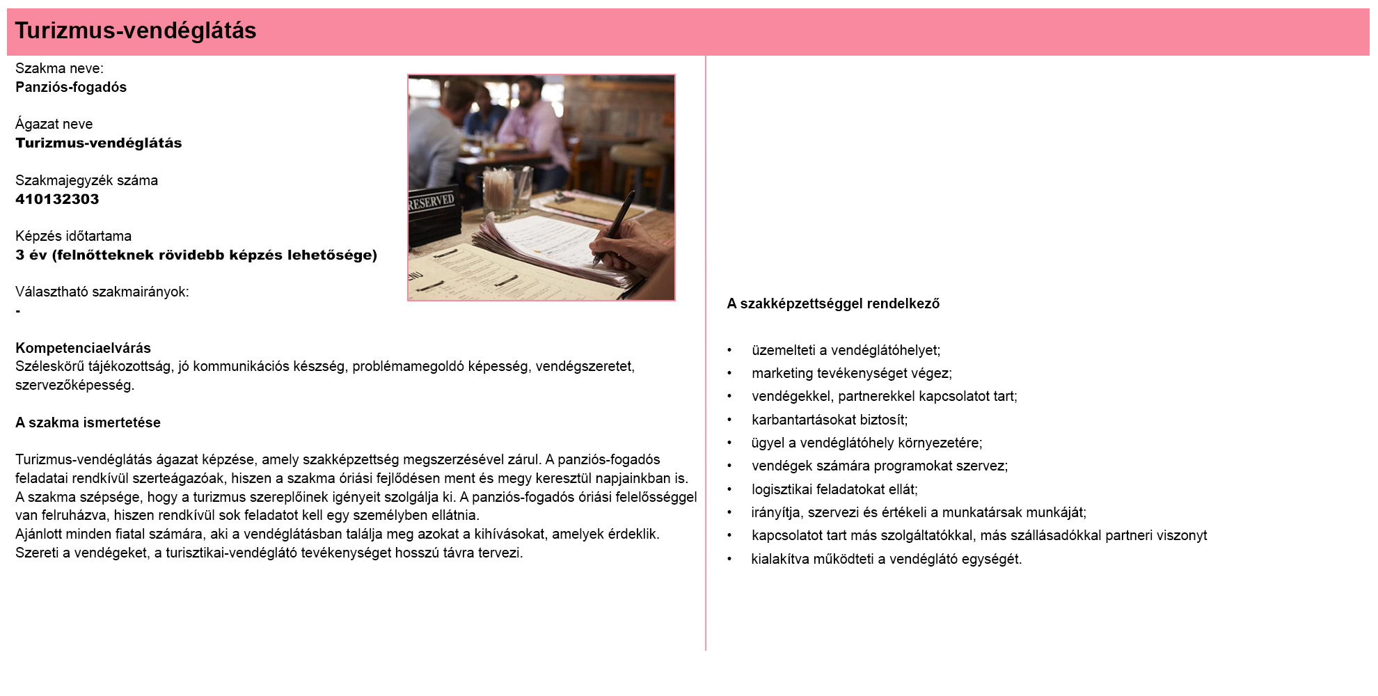 Turizmus - vendéglátás
